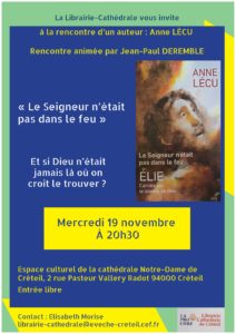 Le mercredi 19 novembre la Librairie-Cathédrale a organisé un débat avec Anne Lécu, autrice du livre  » Le Seigneur n’était pas dans le feu »